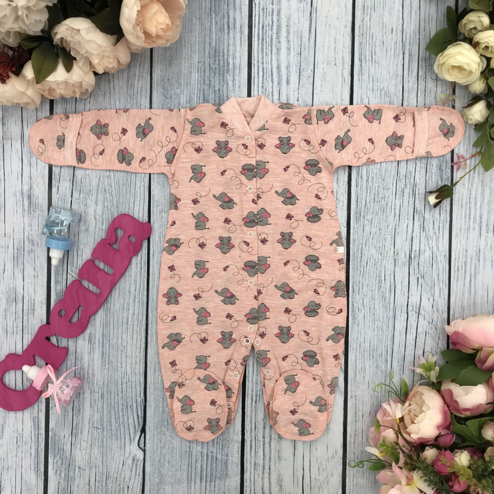 Теги: Купить оптом комбинезон с рисунком. 271-Р. Комбинезон, хлопок 100 % кулирка 56,62,68,74,80, розовый цена,отзывы официальный сайт "Стеша Камышин"